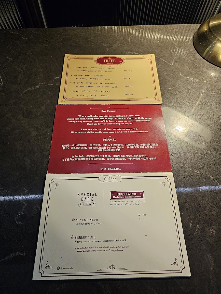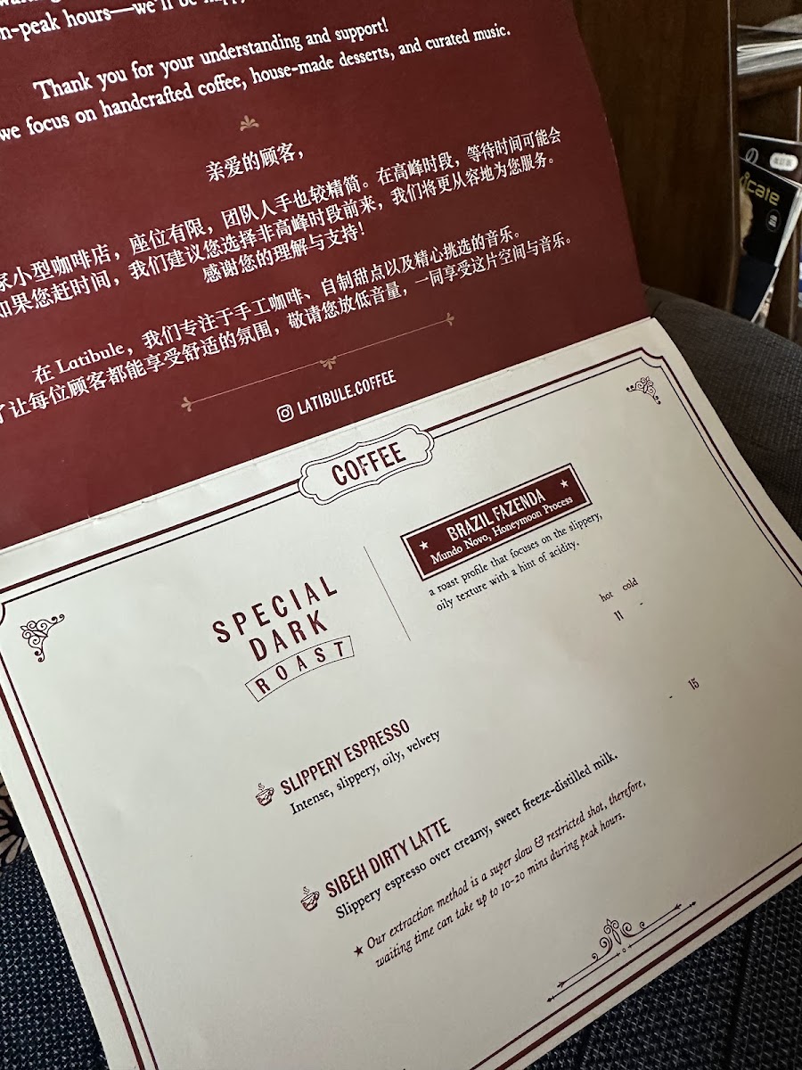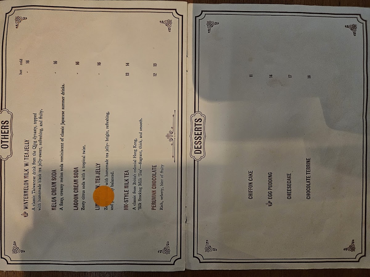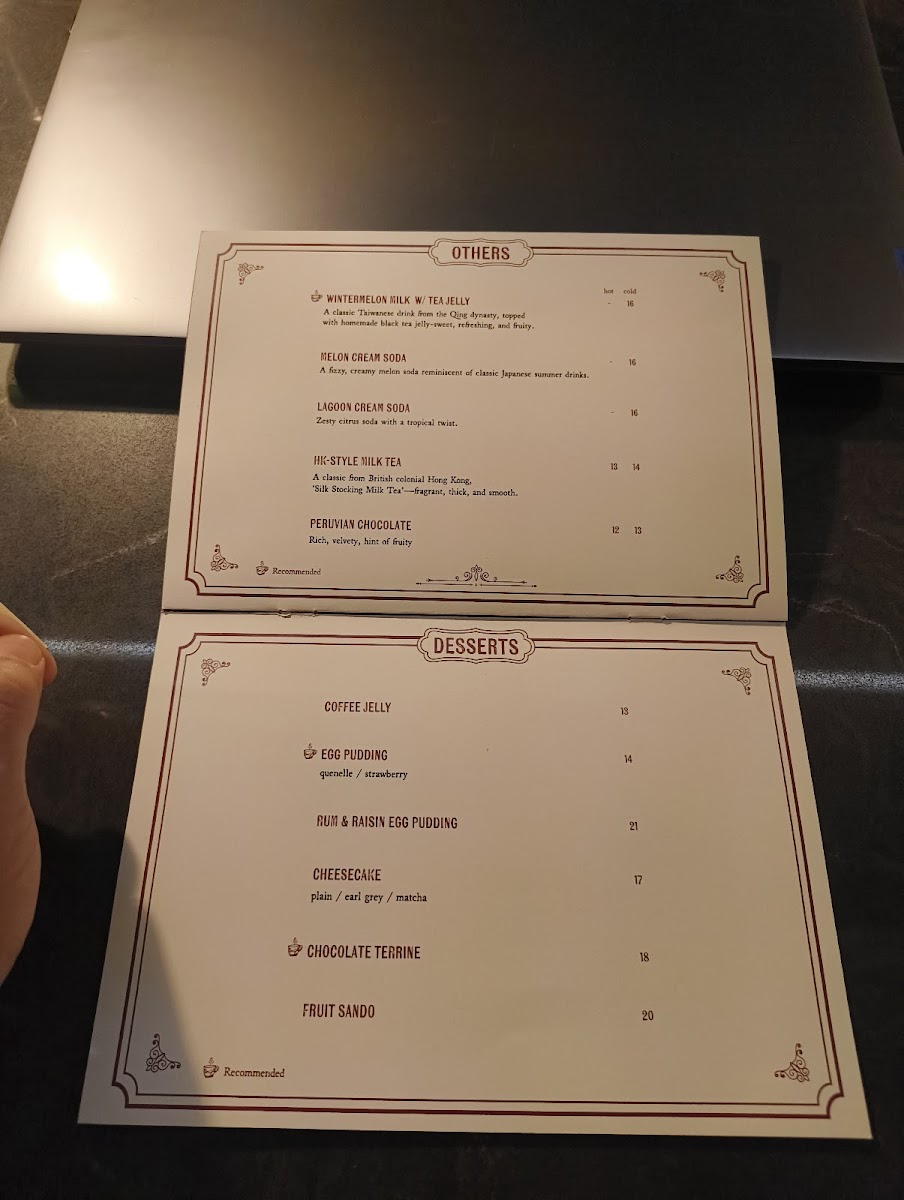 The menu is structured to support different visitor needs, whether for a quick order or a more relaxed, casual dining experience. Coffee selections include both classic and specialty brews, suitable for morning or afternoon consumption. Light food and dessert items provide additional options, making the menu appropriate for light meals and snack times.