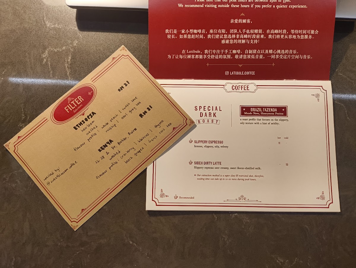 The menu primarily features a variety of coffee options, including specialty coffee beverages favored by regular visitors. Alongside coffee, a selection of desserts and light bites is available to complement the drink choices. The offerings cater to those looking for a casual spot to enjoy coffee breaks or light meals throughout the day.